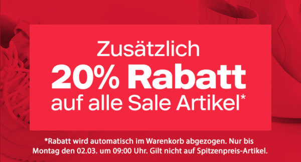Bei Deichmann gibt es jetzt 20% Extra-Rabatt auf Sale-Artikel.
