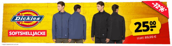Neuer Deal seitens SportSpar, dort bekommt ihr die Dickies Core Everyday Herren Softshelljacke (verschiedene Farben, S-3XL) für 29,95€