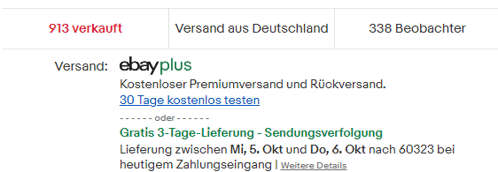 Es fallen keine Versandkosten für die Socken an. Eine eventuell anfallende Retoure ist als eBay Plus-Mitglied kostenfrei.