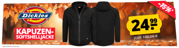 Neuer Deal seitens SportSpar, dort bekommt ihr für die anstehenden kühleren Tage die Dickies Momentum Herren Kapuzen Softshelljacke (verschiedene Farben) für 29,94€