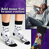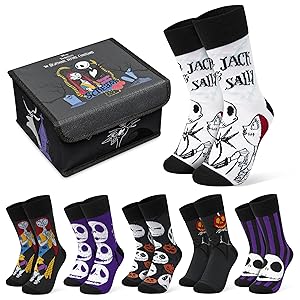 - Spaßiges Design – Zeige deine Begeisterung für Jack Skellington mit diesem 6er-Pack Damen-Socken. Hergestellt aus weichem, dehnbarem Stoff, sind sie perfekt und bequem für den Alltag.