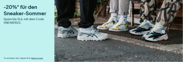 Bei ebay ist gerade eine neue Aktion gestartet bei der ihr 20% Rabatt auf Sneaker bekommt.