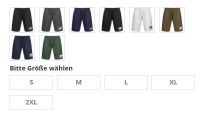 Die Shorts steht euch in verschiedenen Farben und Größen zur Auswahl.
