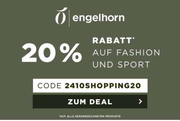 Bei Engelhorn erhaltet ihr bis einschließlich 13. Oktober satte 20% Rabatt auf Fashion und Sportartikel.