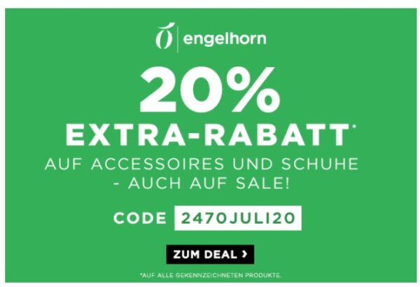 Bei Engelhorn gibt es nun satte 20% Rabatt auf Accessoires und Schuhe gilt auch auf SALE