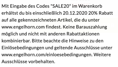 Noch die passende Kleidung gesucht? Bei Engelhorn bekommt ihr 20% Rabatt auf fast Alles inkl. Sale-Artikel