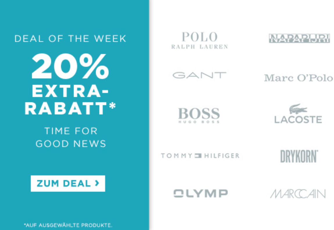 Eine richtig schöne Aktion, die ihr euch jetzt bei Engelhorn genauer anschauen solltet: derzeit gibt es sehr gute 30% Extra-Rabatt auf reduzierte Top-Marken wie Tommy Hilfiger, BOSS oder Marc O’Polo.