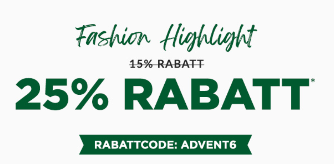 Matthi 05.12.2020, 20:28 # hilfreichJetzt bekommt ihr mit dem Code ADVENT6 25% auf Fashion Highlights (gekennzeichnete Artikel ).