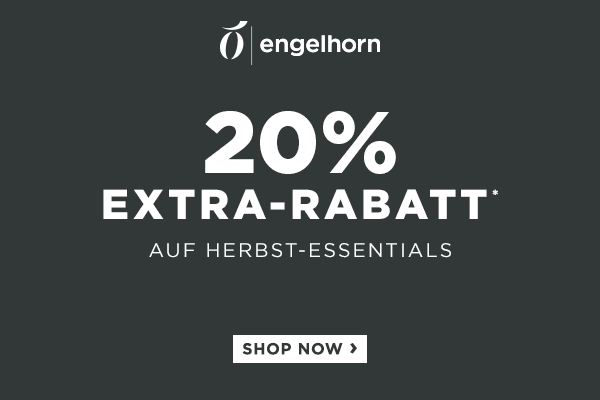 Aufgepasst! Bei Engelhorn erhaltet ihr nun bis einschließlich 9. Oktober satte 20% Extra-Rabatt auf ausgewählte Herbst-Essentials. 🙂