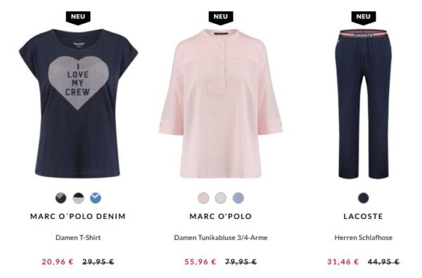 Hierzu gehören Polo Ralph Lauren, Marc O’Polo, Gant, Napapijri und Lacoste.