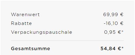 Lediglich eine Verpackungspauschale von 0,95€ pro Bestellung wird fällig.