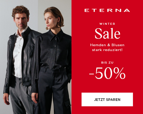 Auf der Suche nach einem neuen Look? Bei ETERNA erhaltet ihr im aktuellen Winter Sale bis zu 50% Rabatt auf ausgewählte Artikel im Sortiment! 🙂