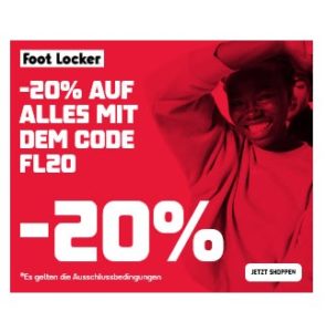 Schöne Aktion zum Start in das Wochenende bei Foot Locker, dort bekommt ihr nun 20% Rabatt auf Alles