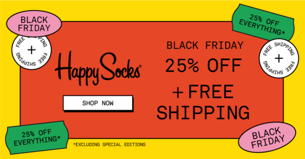 Bei HappySocks erhaltet ihr zum Black Friday Sale satte 25% Rabatt auf alles!