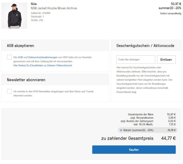 Bei HHV bekommt ihr gerade 20% Extra-Rabatt auf Urban Fashion