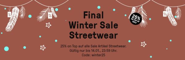 Bis einschließlich 14. Januar erhaltet ihr bei HHV 25% Extra-Rabatt auf alle Artikel im SALE. 🙂