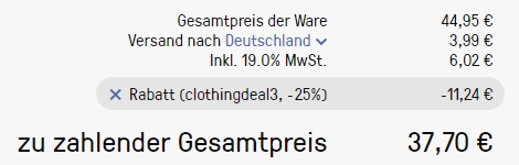 - 25% Extra-Rabatt auf alle bereits reduzierten Artikel aus dem Modebereich