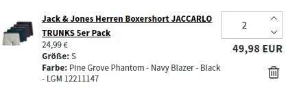 Denn bei Mybodywear bekommt man die 2x Jack & Jones Jaccarlo Trunks Boxershorts (5er-Pack) für 39,99€ (Vergleichspreis: ~47€) Ersparnis ~7€