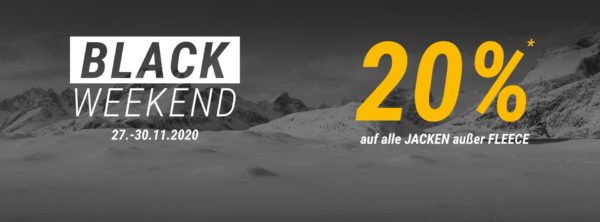 Bei Jack Wolfskin findet nun der Black Weekend mit 20% Rabatt auf alle Jacken (außer Fleece) im Online-Shop statt.