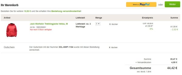 Die Jacke wird seitens GartenXXL versandkostenfrei geliefert.