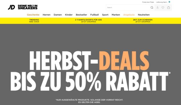 Bei JD Sports erhaltet ihr nun bis zu 50% Rabatt bei den Herbst-Deals unter anderem mit vielen Artikeln von „The North Face“ 🙂