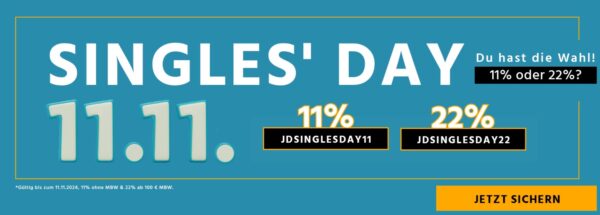 Auch Jeans-Direct mischt beim Singles Day mit, dort könnt ihr euch bis zu 22% Rabatt sichern.