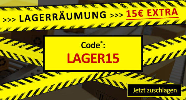 - 15€ Extra-Rabatt auf Lagerräumung