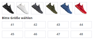 Zur Verfügung stehen noch durchgehend die Größen 41 bis 48, sowie alle verschiedenen Farben.