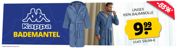 Neuer Deal seitens SportSpar, dort bekommt ihr den Kappa Unisex Baumwoll Bademantel (S-XL) für 15,94€