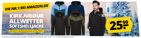 Bei SportSpar bekommt ihr genau das richtige zum kalten und windigen Wetter die KIRKJUBØUR „Njordr“ Herren SOFTSHELLjacke (verschiedene Farben) für 30,94€