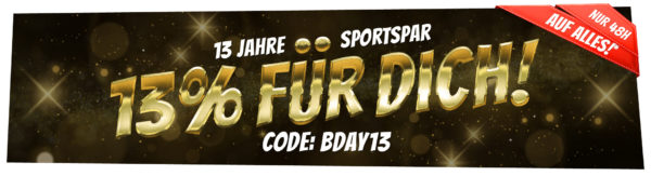 Knaller! SportSpar feiert 13 Jährigen Geburtstag und schenkt euch für 48 Stunden (bis einschl. 28. Juli – 10 Uhr) satte 13% Rabatt auf ALLES!