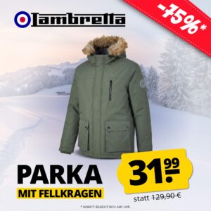 Passend zum kalten Wetter bekommt ihr bei SportSpar die Lambretta Parka mit Fellkragen Herren Winterjacke (S-4XL) für 36,94€