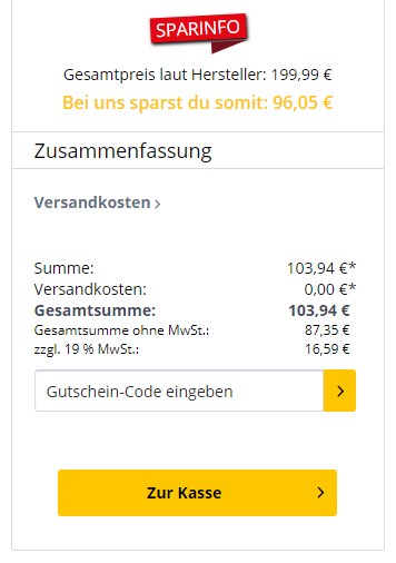 Meldet euch zum Newsletter an, danach bekommt ihr einen Code und wendet den im Warenkorb an und schon kommt ihr auf den Preis.
