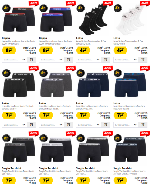 - Marken wie Kappa, Sergio Tacchini und Lotto ab 4,99 €