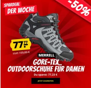 Noch auf der Suche nach Outdoorschuhen? Bei SportSpar bekommt ihr die MERRELL GORE-TEX Outdoorschuhe für Damen (36-42,5) für 72,77€