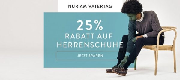 Zum Vatertag erhaltet ihr nur heute bei Mirapodo satte 25% Rabatt auf Herrenschuhe. 🙂