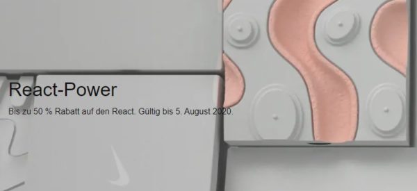 Im Onlineshop von Nike ist gerade eine neue Aktion gestartet, bei der ihr bis zu 50% Rabatt auf React 55, Air Max 270 & ausgewählte Sportwear Styles