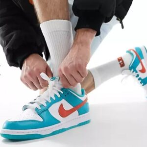 Neuer Sneaker gesucht, bei ASOS bekomme ihr die Nike – Dunk Low Retro – Sneaker in Weiß und Blau „Miami Dolphins“ (35,5-48,5) für 89,99€ (Vergleichspreis ~110€) Ersparnis ~20€