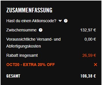 - 20% Extra-Rabatt durch den oben genannten Gutscheincode