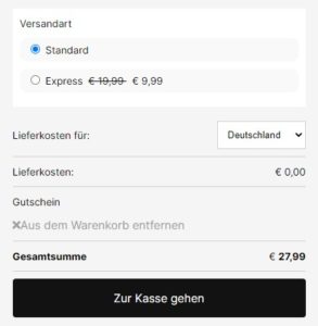 Dank dem genannten Gutschein entfallen die Versandkosten
