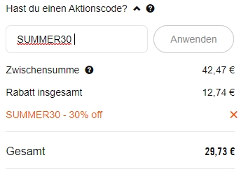 Um auch auf den Preis zu kommen, müsst ihr den Gutschein SUMMER30 verwenden.