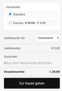 Mit dem genannten Gutschein entfallen die Versandkosten