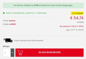 Der Versand wie auch eine eventuelle Retoure erfolgt kostenlos.