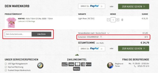 Nutzt den Gutschein 25SUMMER10 und schon bekommt ihr den Rabatt.