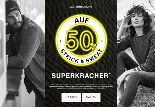 *NUR HEUTE* Camp David & Soccx: 50% Rabatt auf alle Strick & Sweat