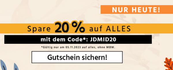 Für den 20% Rabatt müsst ihr den Gutschein JDMID20 verwenden.