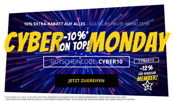 SportSpar lässt es am Cyber Monday nochmal richtig krachen und ihr bekommt 10% Rabatt auf ALLES!