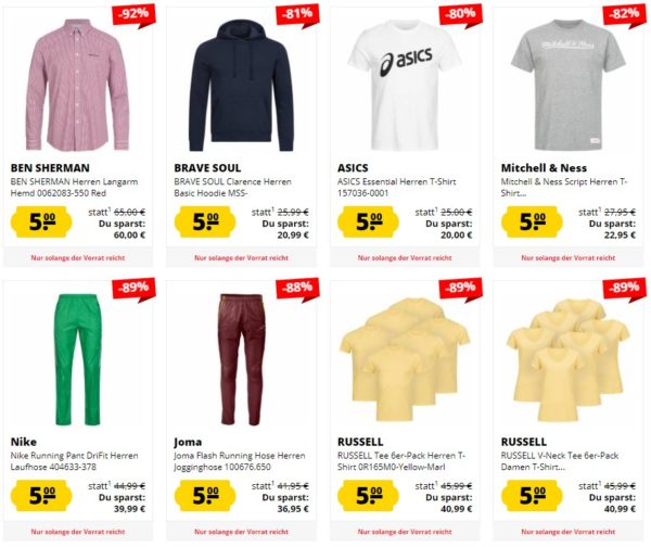 *BIS 11 UHR* SportSpar: Mega-Sale bis zu 93% Rabatt – 5€ Fixpreis-Aktion über 200 Artikel verfügbar – z.B. Nike, Brave Soul, Puma, adidas uvm.