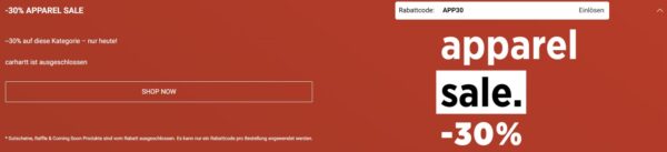 - 30% Extra-Rabatt auf fast das gesamte Bekleidungs-Sortiment