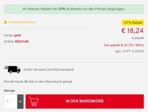Der Versand wie auch eine eventuelle Retoure erfolgt kostenlos.